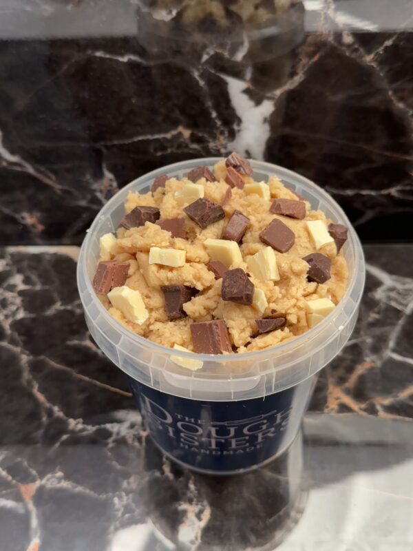 De combinatie van pure, melk en witte chocolade is als een echte traktatie. De verschillende chocolade smaken gecombineerd met Cookie Dough is alsof je jezelf trakteert op een stukje puur geluk.